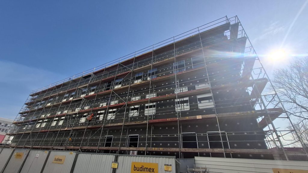 Realizowany jest w technologii tradycyjnej, płytowo-słupowej z zewnętrznymi ścianami nośnymi. Stropy, dach, rdzenie i słupy są żelbetowe, ściany nośne i działowe wymurowane są z bloczków silikatowych. Fundamenty obiektu to ławy i stopy żelbetowe, posadowione na prostych warunkach gruntowych, z betonem klasy C25/30 i zbrojeniem RB500W.