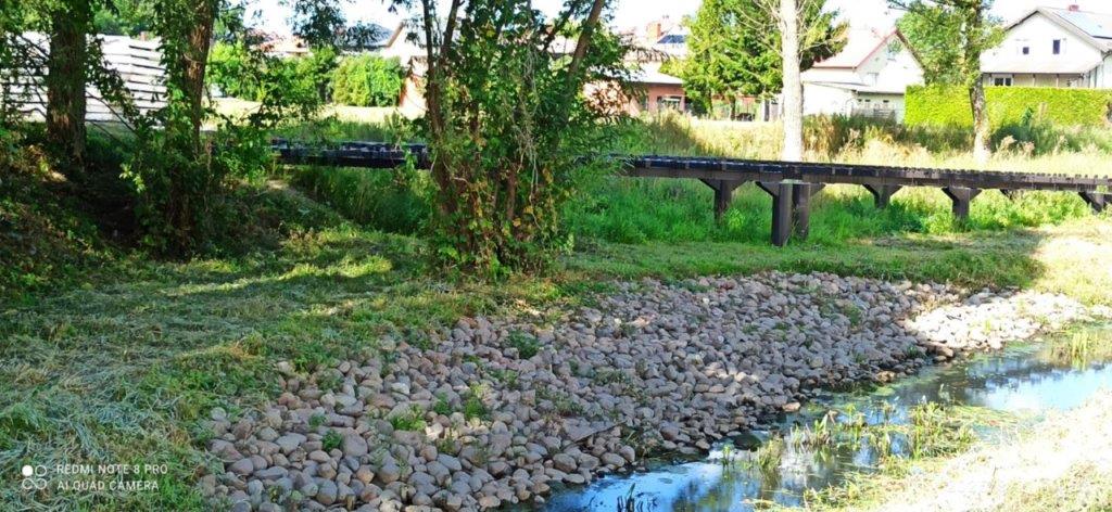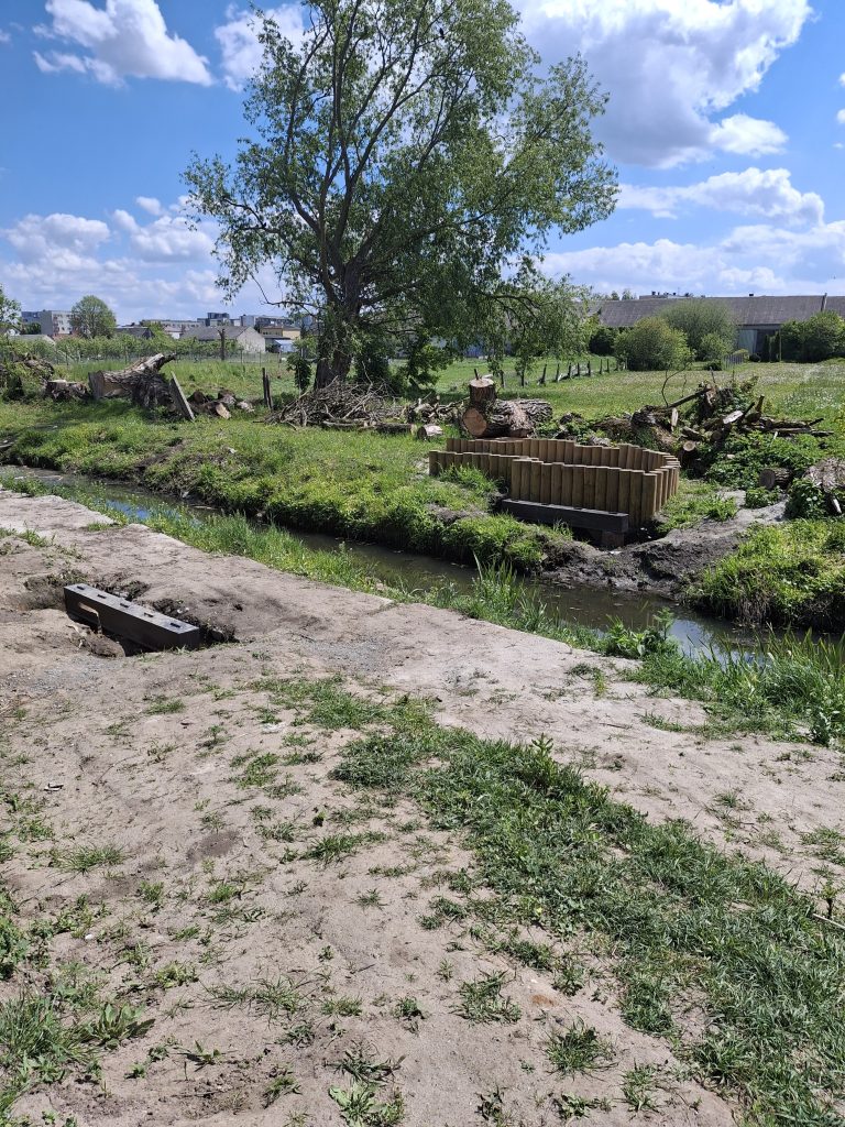 Pozostałe prace to przebudowa rowu odwadniającego prawobrzeżny teren przyległy do rzeki na przepust o długości 8,25 m i średnicy 80 cm pod projektowanym ciągiem komunikacyjnym oraz wykonanie dwóch pryzm żwirowo-kamiennych w korycie rzeki wraz z wyłagodzeniem i umocnieniem jednej ze skarp koryta na długości pryzmy.