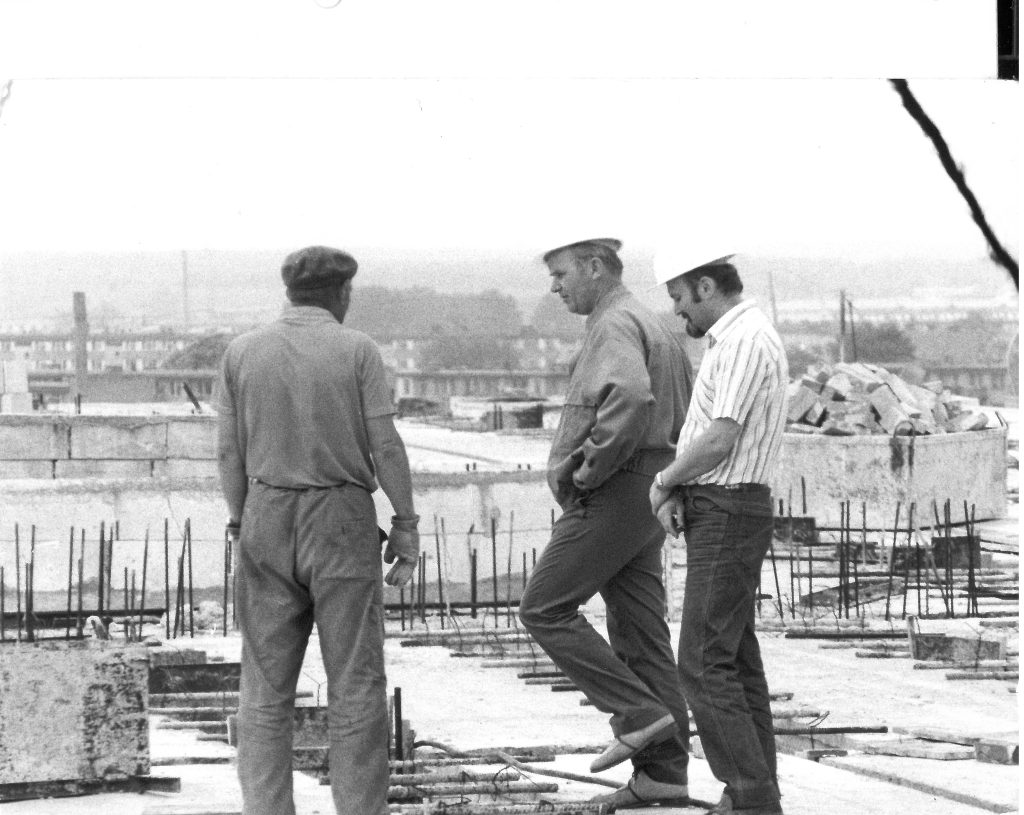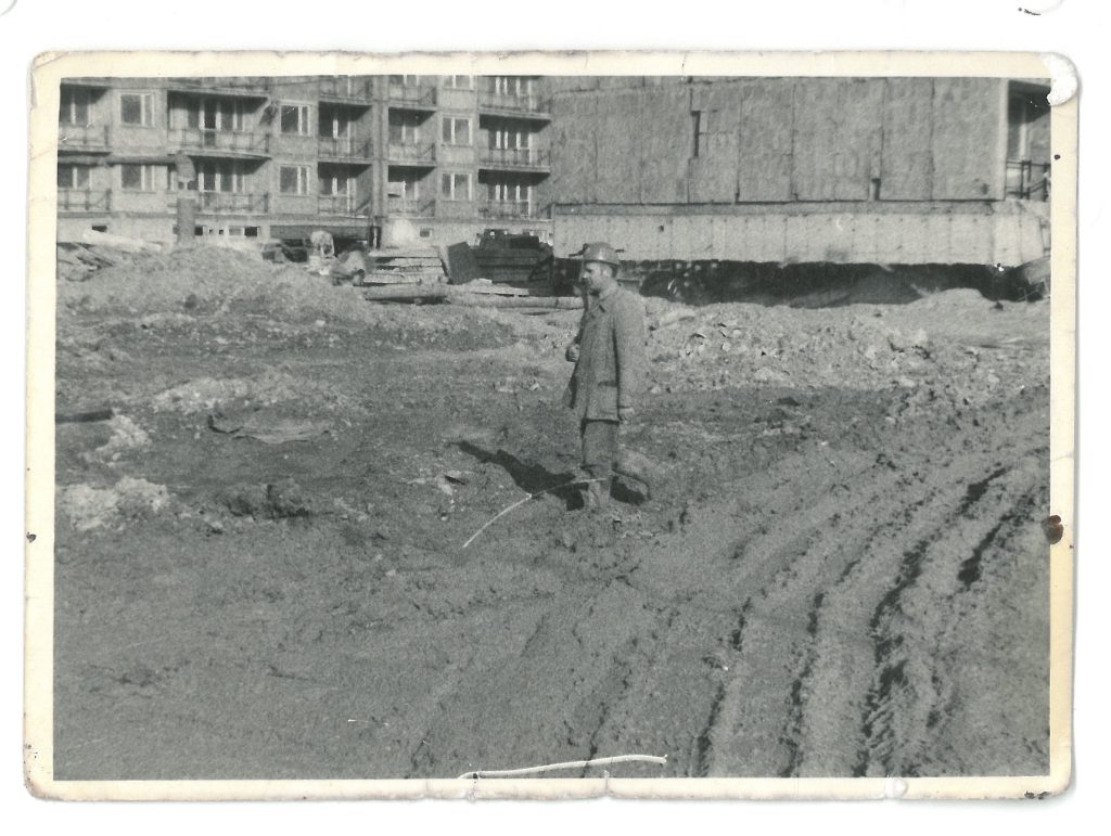 Place budów jak różniły się od dzisiejszych. O koparkach nie było mowy. Wykopy robiono ręcznie, zimą zmarzniętą ziemię kilofami kuliśmy i wywoziliśmy na inną budowę. Wozy były na gumowych kołach, robotnicy ręcznie wrzucali i wyrzucali załadunek, a wozacy pilnowali koni. Pierwszy żuraw na budowie zamontowano w 1954 r. na budowie Fabryki Przyrządów i Uchwytów przy ul. Łąkowej. Pracownicy budownictwa z całego miasta przychodzili obejrzeć jak wygląda. Transport pionowy materiałów odbywał się za pomocą w wind przyściennych montowanych z bali drewnianych przez cieśli.