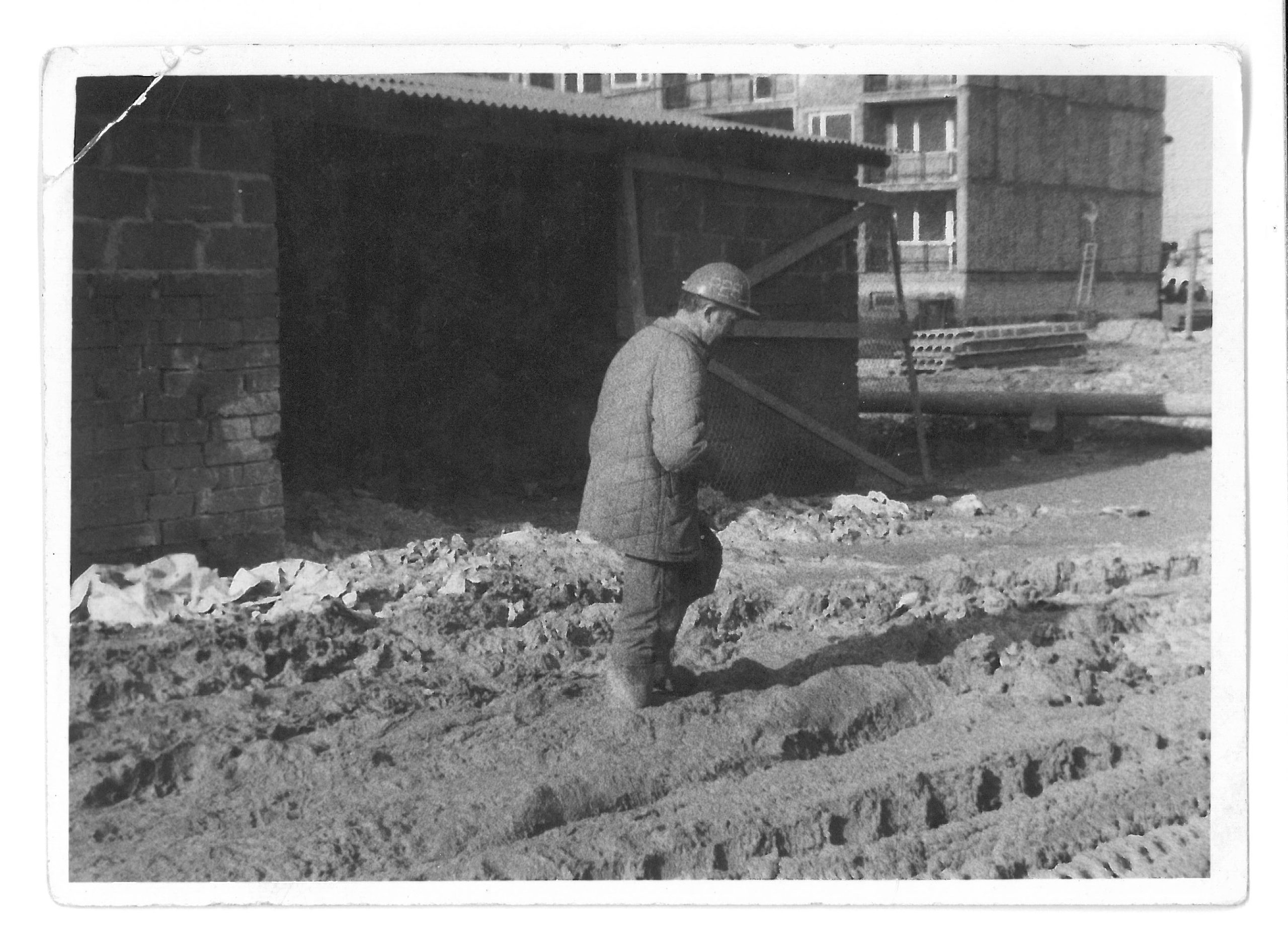 Place budów jak różniły się od dzisiejszych. O koparkach nie było mowy. Wykopy robiono ręcznie, zimą zmarzniętą ziemię kilofami kuliśmy i wywoziliśmy na inną budowę. Wozy były na gumowych kołach, robotnicy ręcznie wrzucali i wyrzucali załadunek, a wozacy pilnowali koni. Pierwszy żuraw na budowie zamontowano w 1954 r. na budowie Fabryki Przyrządów i Uchwytów przy ul. Łąkowej. Pracownicy budownictwa z całego miasta przychodzili obejrzeć jak wygląda. Transport pionowy materiałów odbywał się za pomocą w wind przyściennych montowanych z bali drewnianych przez cieśli.