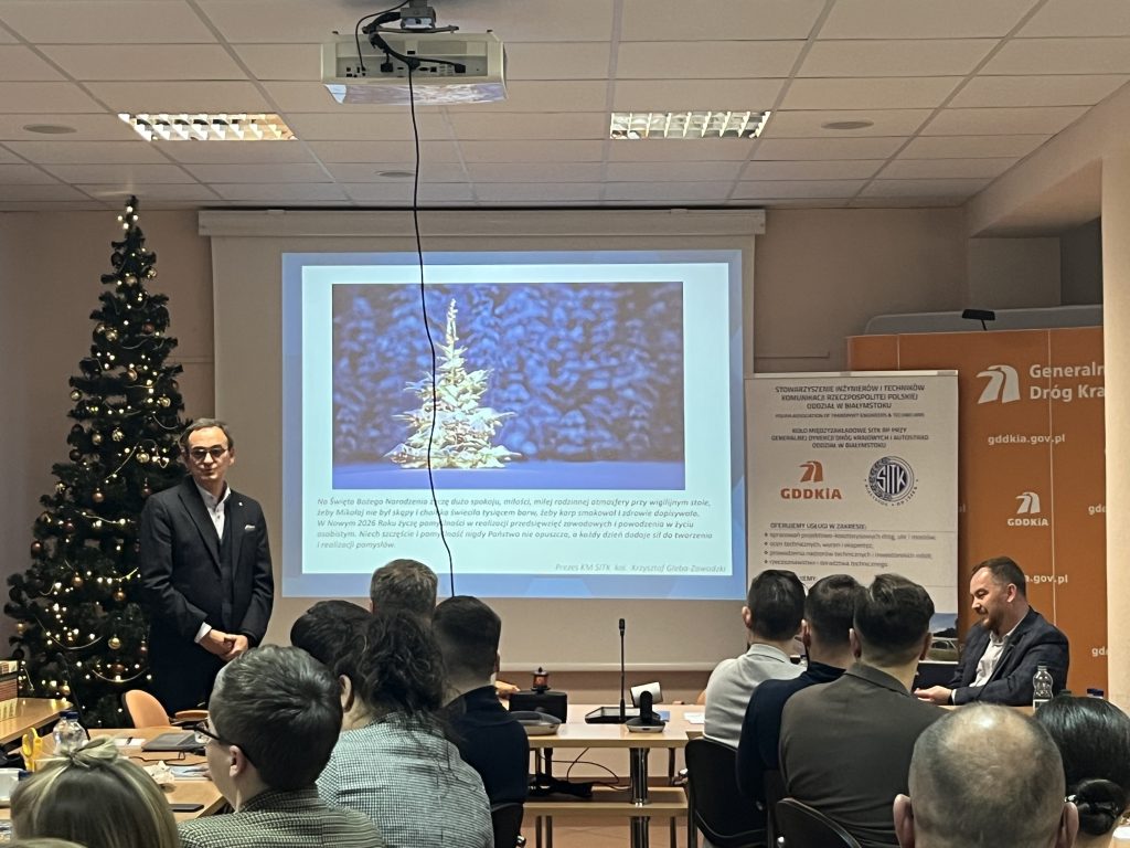 9 grudnia spotkali się członkowie Koła Międzyzakładowego Stowarzyszenia Inżynierów i Techników Komunikacji RP przy Generalnej Dyrekcji Dróg Krajowych i Autostrad Oddział Białystok. Techniczno-okolicznościowa uroczystość, łącząca szkolenie członków Koła i pracowników Oddziału, za zgodą Wojciecha Borzuchowskiego, dyrektora Oddziału GDDKiA odbywała się w sali konferencyjnej siedziby Dyrekcji przy ul. Zwycięstwa 2 w Białymstoku. Kilkudziesięciu uczestników powitał Krzysztof Gleba-Zawadzki, przewodniczący Koła.