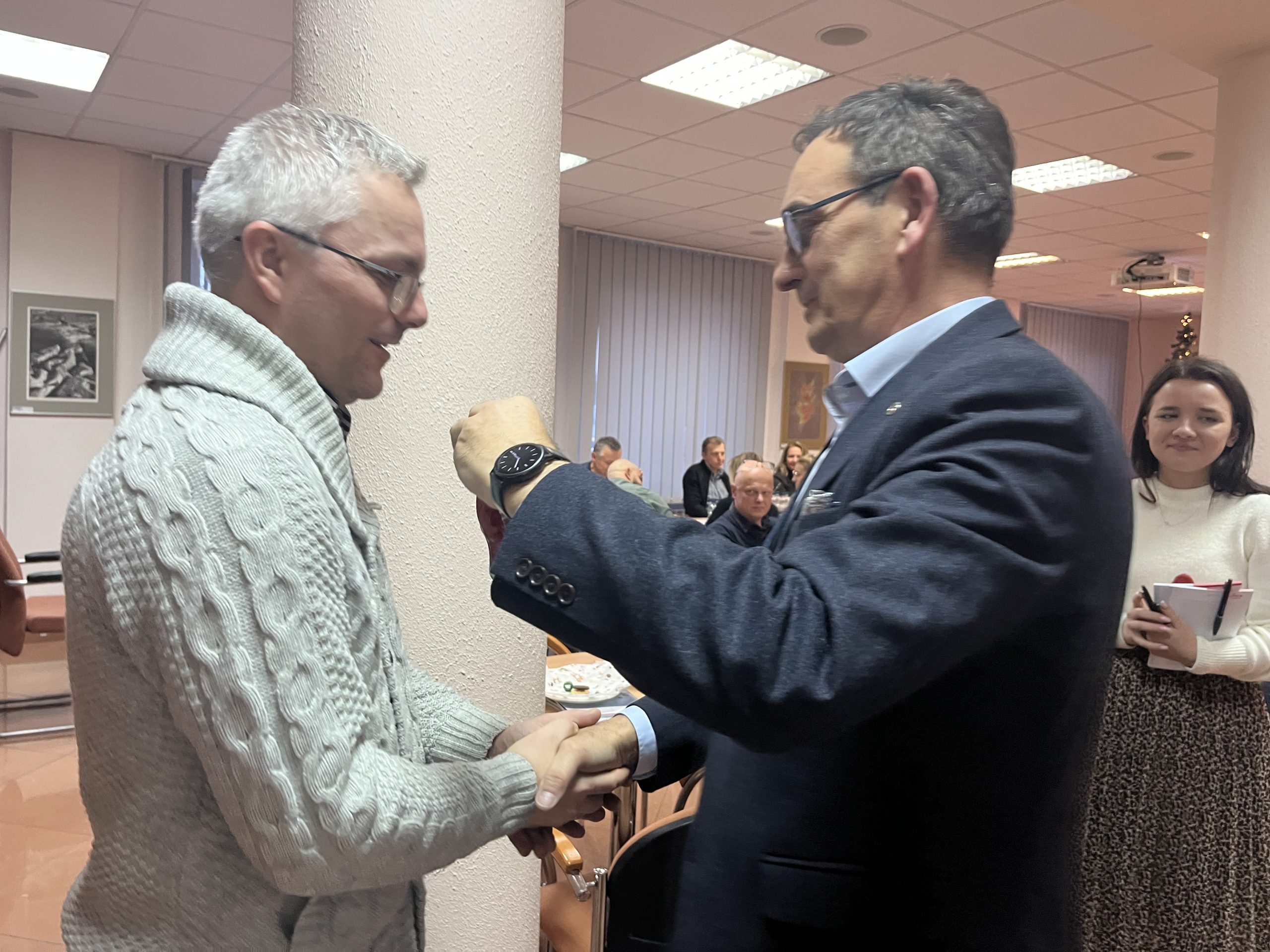 Po wyczerpaniu tematów technicznych, uroczystym wręczeniem legitymacji nowym członkom Koła rozpoczęła się świąteczna część spotkania. Koniec roku to jak zwykle czas podsumowań. Prezentację zrealizowanych w 2025 r. przez Koło przedsięwzięć, szkoleń, wyjazdów technicznych i integracyjnych przedstawił Krzysztof Gleba-Zawadzki. Uzupełniał je Marek Motylewicz – prezes zarządu Oddziału SITK RP, głównie informacjami o działaniach samego Stowarzyszenia, lokalnie i na szczeblu krajowym. Poniżej kilka wspomnień z mijającego roku.