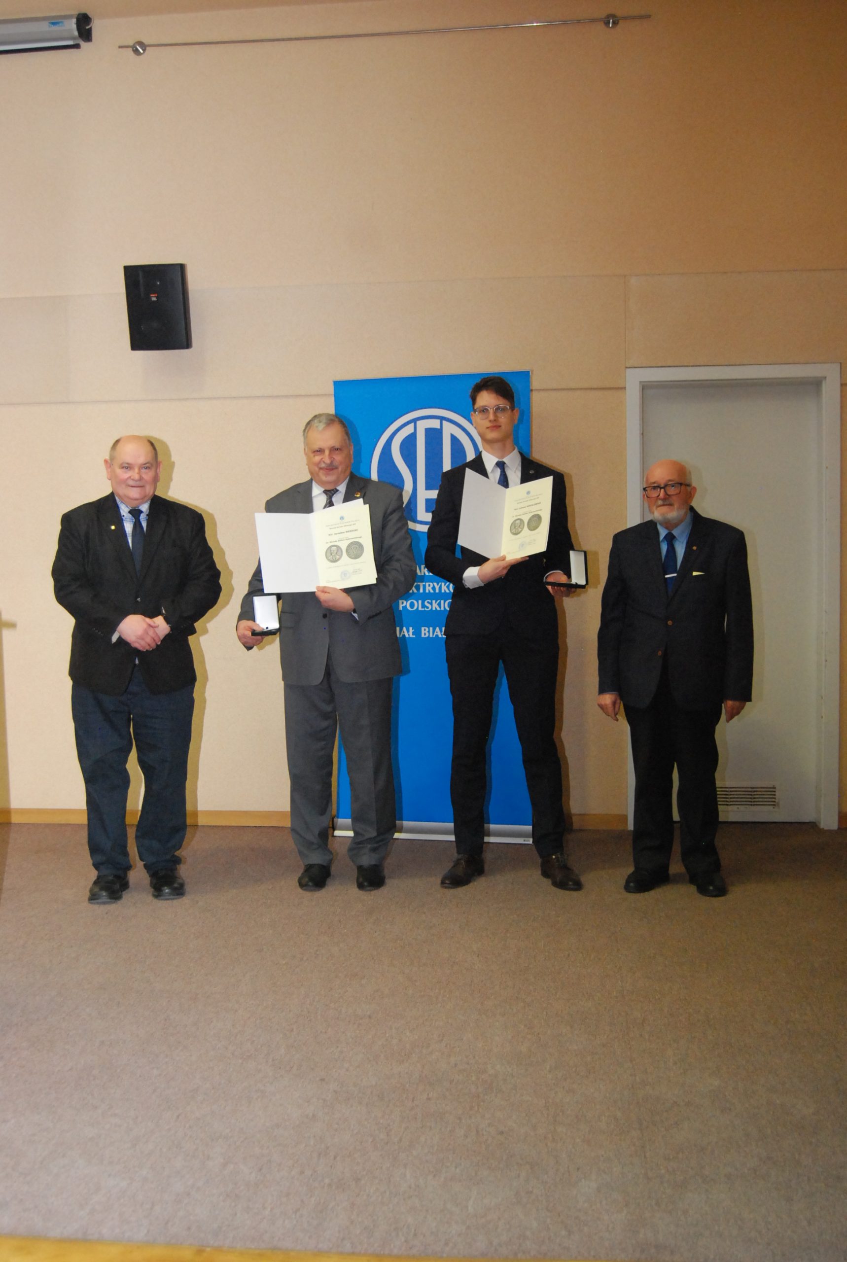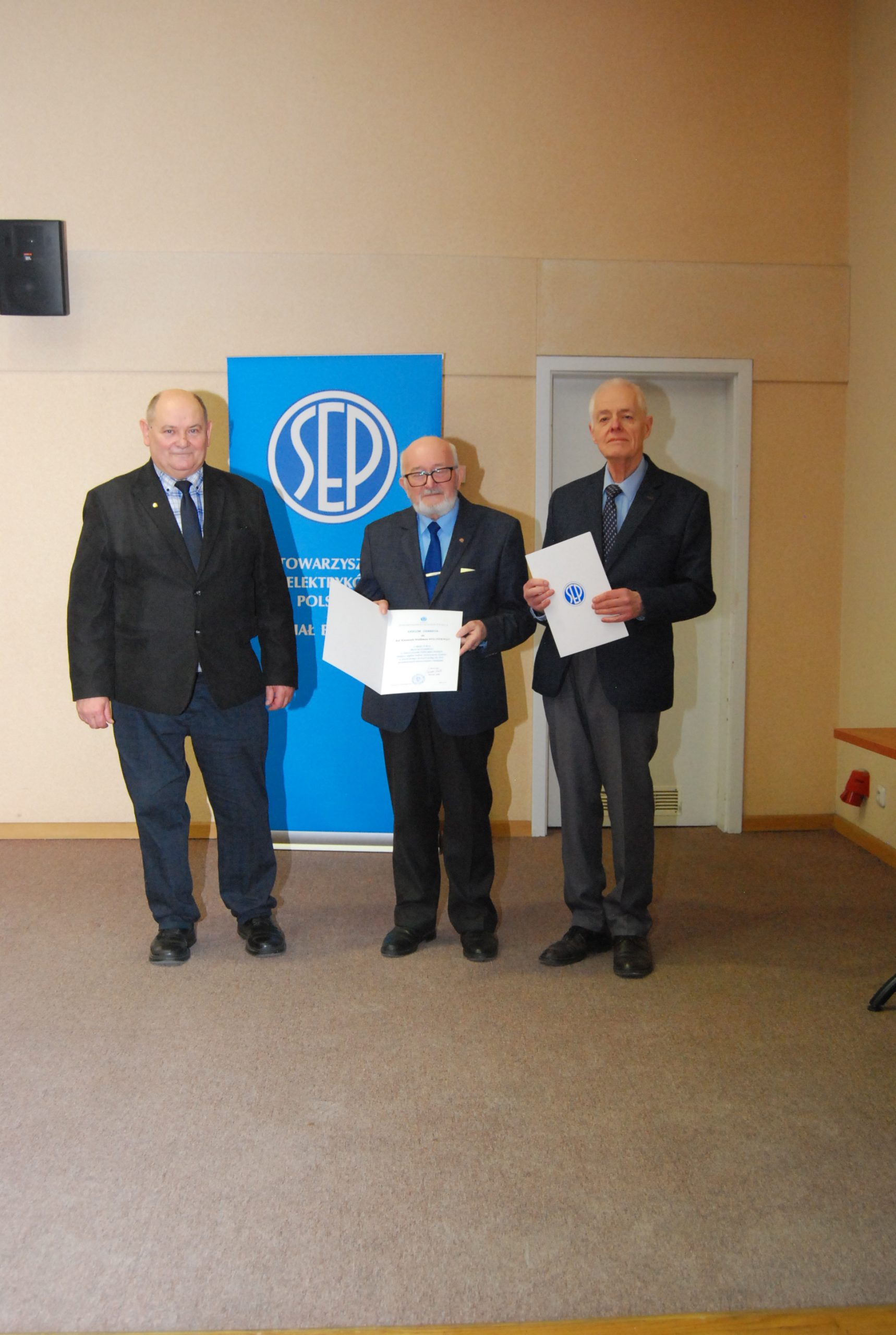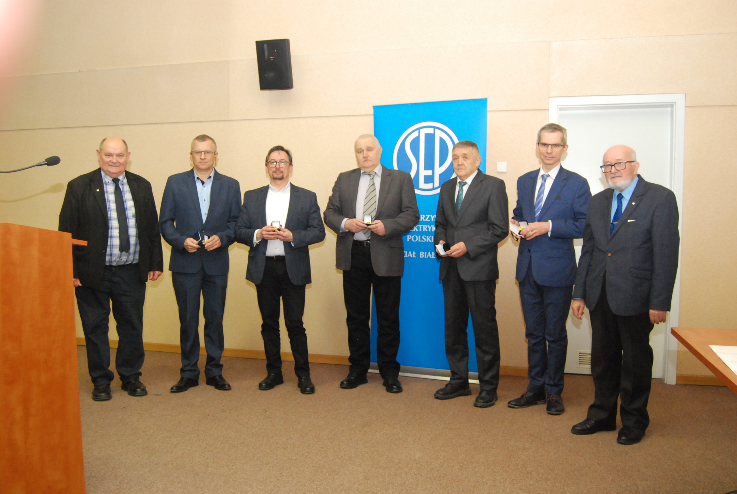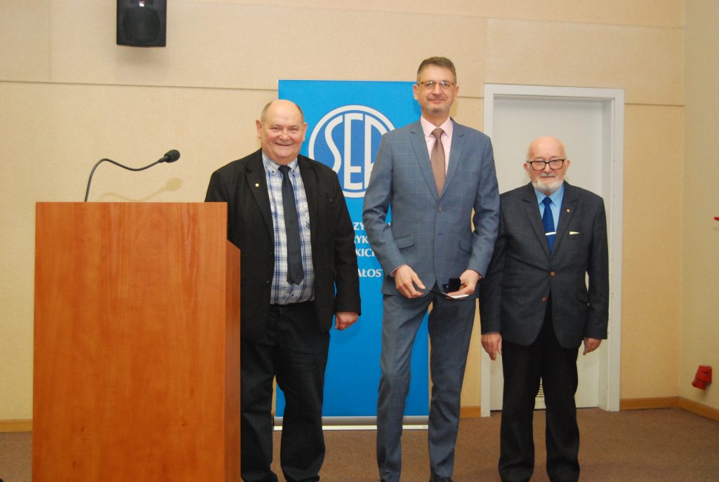 Kolejnym przyjemnym punktem było wręczenie odznaczeń zasłużonym członkom Oddziału. Wręczali je Krzysztof Woliński – członek Zarządu Głównego SEP oraz Paweł Mytnik. A otrzymali je: Jarosław Androsiuk – Srebrna Odznaka Honorowa SEP; Grzegorz Dąbrowski, Andrzej Misiukiewicz, Waldemar Potocki, Marek Rygorowicz i Grzegorz Sasinowski – Złota Odznaka Honorowa SEP; Kazimierz Cywiński, Halina Mroczkowska i Krzysztof Kobyliński – Szafirowa Odznaka Honorowa SEP. Medal im. prof. Mieczysława Pożaryskiego został przyznany: Oldze Bartuś, Ryszardowi Kłakowi, Kazimierzowi Batruchowi, Michałowi Krasowskiemu, Jerzemu Lewczykowi i Stanisławowi Tomaszewskiemu. Kilka osób nagrodzono medalami: Dariusz Szkiłądź – Medal im. inż. Kazimierza Szpotańskiego; Grzegorz Hołdyński, Paweł Mytnik i Marcin Sulkowski – Medal im. prof. Janusza Groszkowskiego; Łukasz Sokołowski i Jarosław Werdoni – Medal im. inż. Michała Doliwo-Dobrowolskiego; Marek Łukaszuk – Medal im. prof. Jana Obrąpalskiego. Dyplom uznania SEP otrzymali Jerzy Kołłątaj i Krzysztof Woliński.