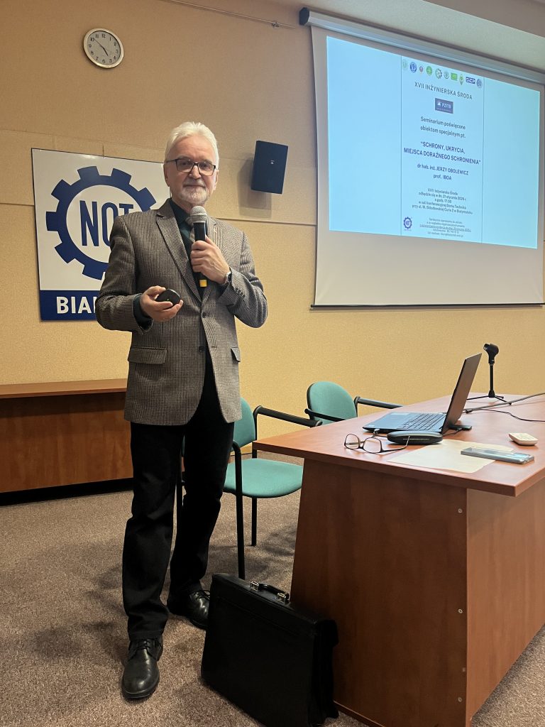 Temat miejsc ukrycia był poruszany przez środowisko inżynierskie podczas wczorajszej (21 stycznia 2026r.) Inżynierskiej środy, która odbyła się w budynku NOT przy ul. Skłodowskiej 2 w Białymstoku. Ciekawą prelekcję na ten temat przygotował dr hab. inż. Jerzy Obolewicz, prof. instytutu naukowego Inżynierii Bezpieczeństwa Obiektów Antropogenicznych i członek Polskiego Związku Inżynierów i Techników Budownictwa Oddział w Białymstoku. Wspólnie z autorem przygotowaliśmy Państwu relację z wystąpienia. Zatem… zapraszamy do lektury.