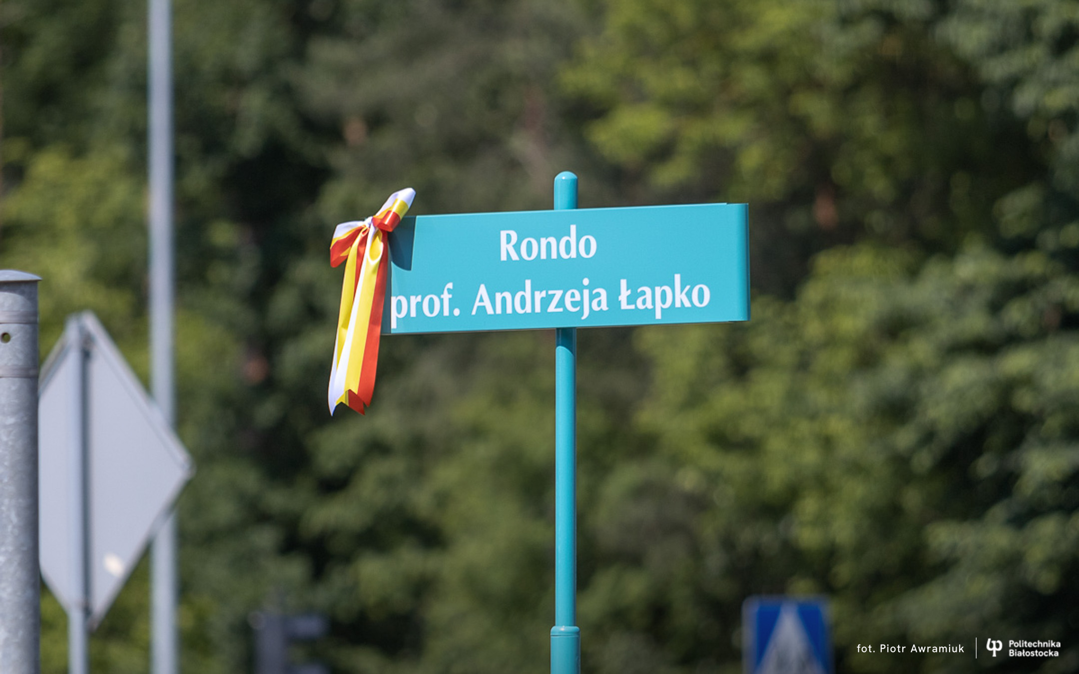 28 marca 2022 r. białostoccy radni jednogłośnie przyjęli wniosek, z którym wystąpili pracownicy Politechniki Białostockiej oraz Stowarzyszenie Bractwo Prawosławne świętych Cyryla i Metodego o nazwanie imieniem prof. Andrzeja Łapko ronda położonego na osiedlu Wygoda, u zbiegu ulic gen. Nikodema Sulika i Ciołkowskiego. Zdjęcie z uroczystości 9 czerwca 2022 r., kiedy Tadeusz Truskolaski – prezydent Białegostoku spotkał się z rodziną profesora – żoną Nadzieją Łapko i synową Grażyną Maliszewską-Łapko, a także wnioskodawcami. Prezydent przekazał im na pamiątkę uchwałę, której wykonanie powierzyła mu Rada Miasta
