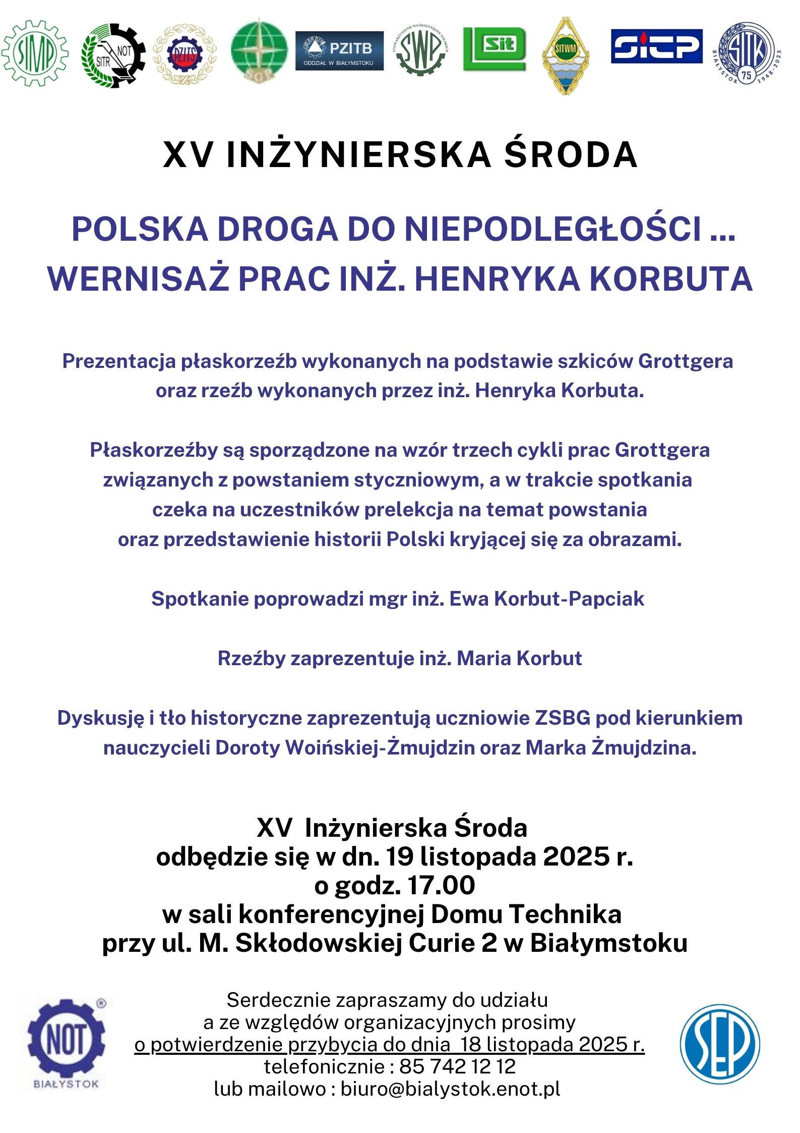 „Polska droga do niepodległości. Wernisaż prac śp. inż. Henryka Korbuta” to temat kolejnej, XV edycji Inżynierskiej środy. Zapraszamy 19. listopada 2025 r.